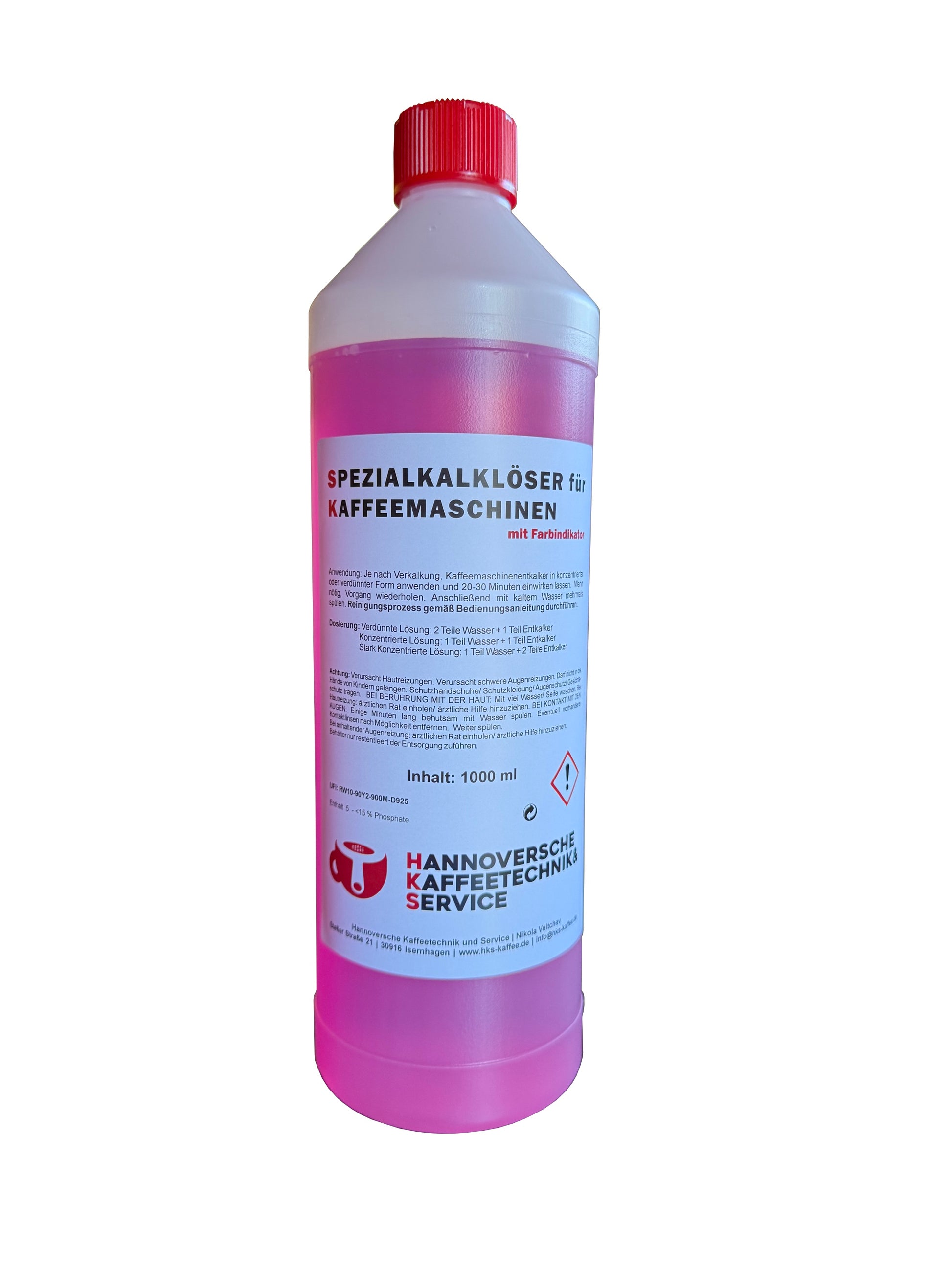 - Der HKS-Kaffee Flüssigentkalker ist ein konzentrierter, schaumloser und parfümfreier Kalklöser mit Farbindikator