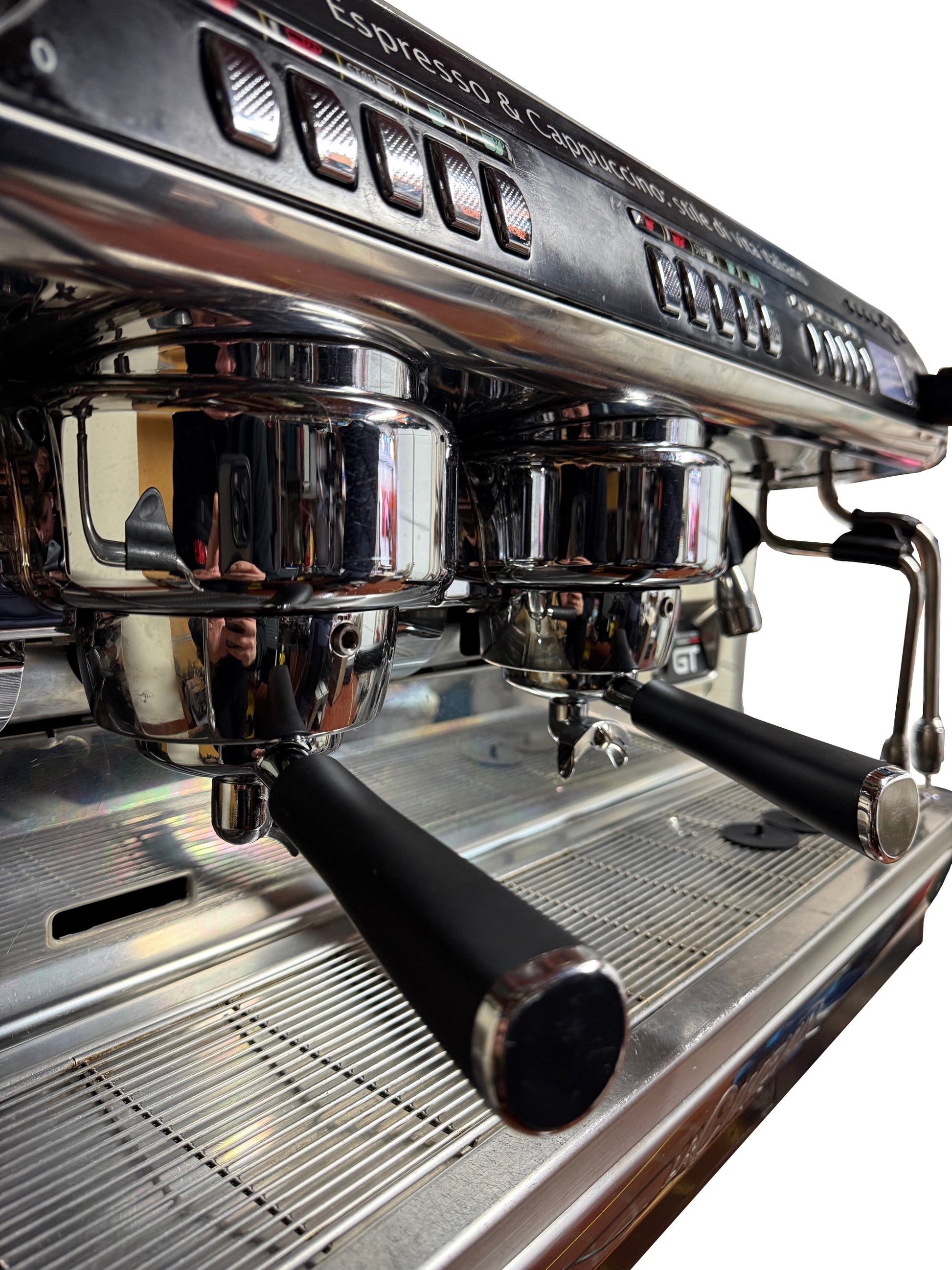 Zum Verkauf steht hier unsere komplett generalüberholte La Cimbali M39 GT 2-gruppig Kaffeemaschine, Siebträgermaschine mit speziell verbauten Mikrosieben (Präzisionssiebe!).