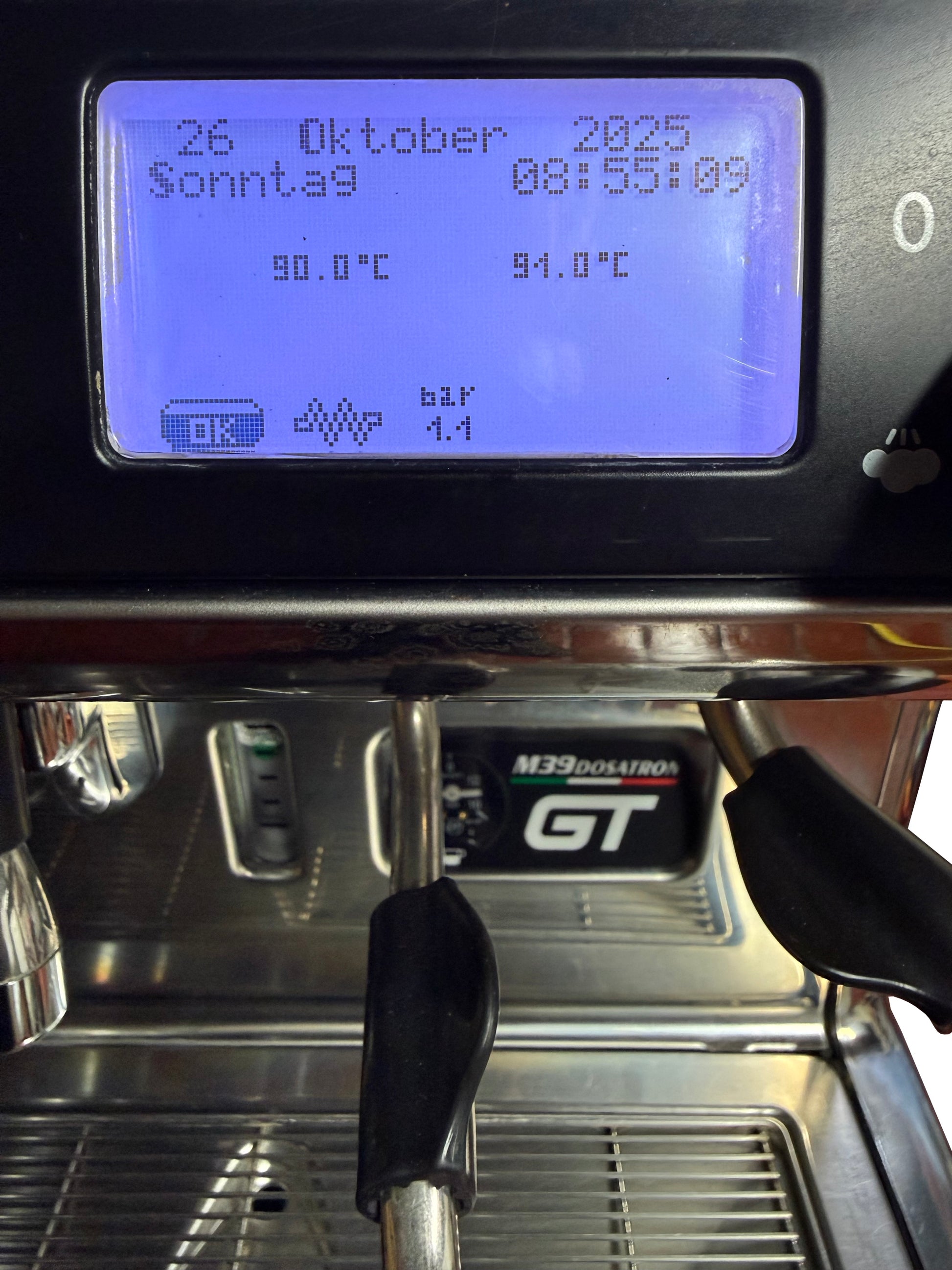 Die M39 GT ist baugleich (Dual Boiler an den Gruppen) mit der M100 Maschine, nur ohne die anfälligen Touch Displays.